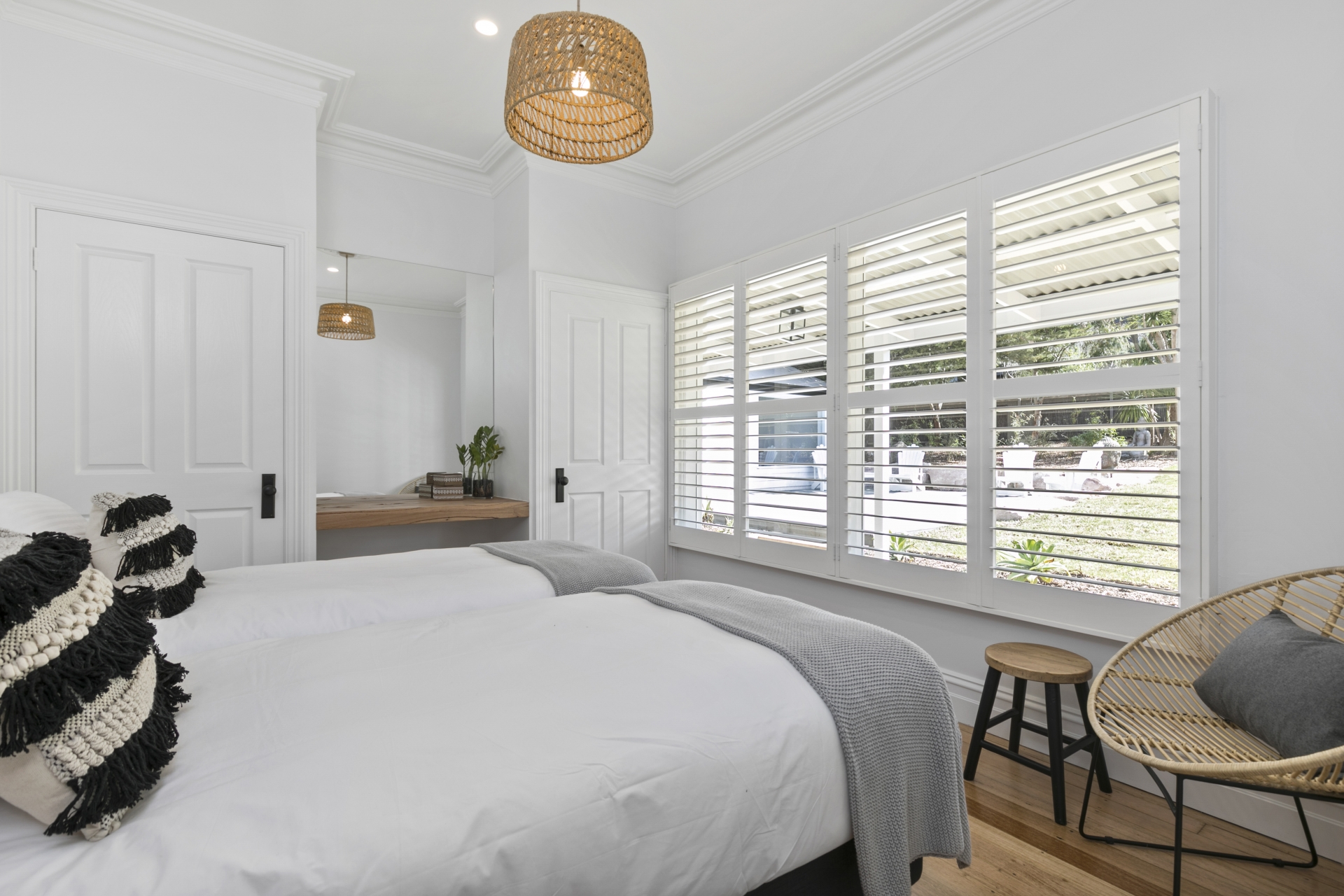 - Twin Share/Shared Bathroom: 3 Bedrooms are configured as 2 single beds. Shared with a beautiful soul as your roommate or come along with a friend to retreat together.